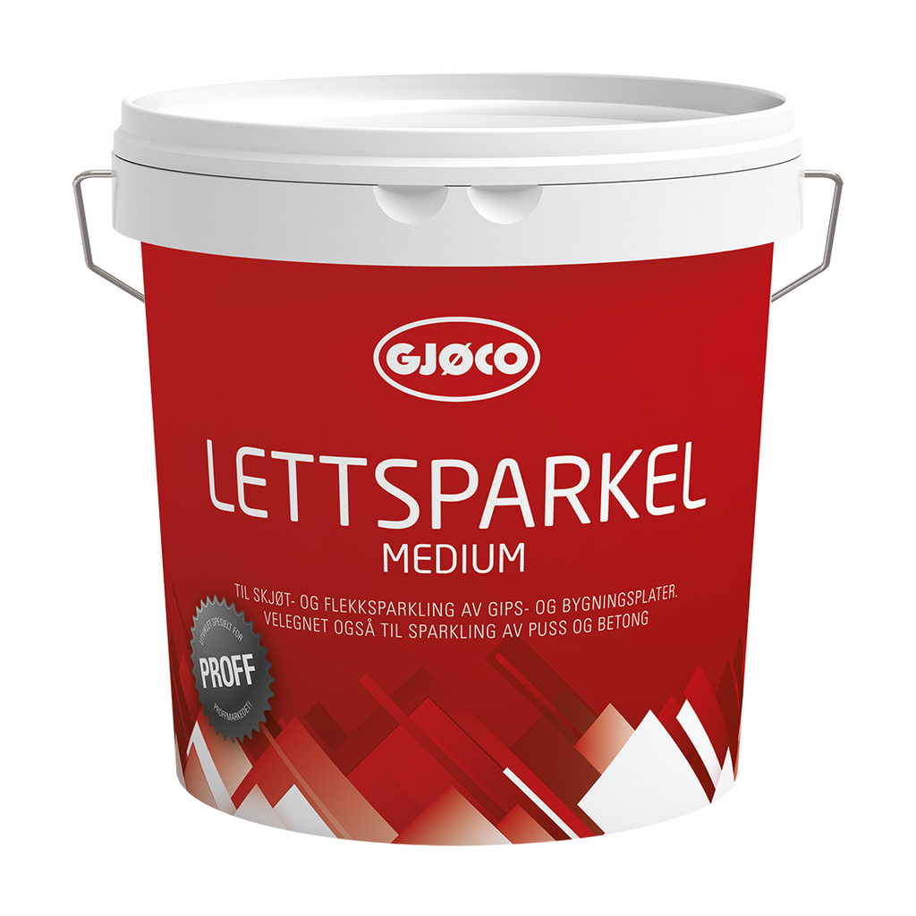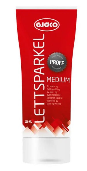 Proff Lättspackel Medium är en högkvalitativ lättviktsspackel för alla normalt förekommande underlag på vägg- och takytor inomhus i torra rum. Produkten är lätt att applicera och slipa, och har mycket god fyllningsförmåga. Produkten är lämplig för både ispackning och bredspackling av puts, betong, lättbetong och tidigare målade ytor inom såväl renovering som nyproduktion. Lämplig att använda under tapeter.