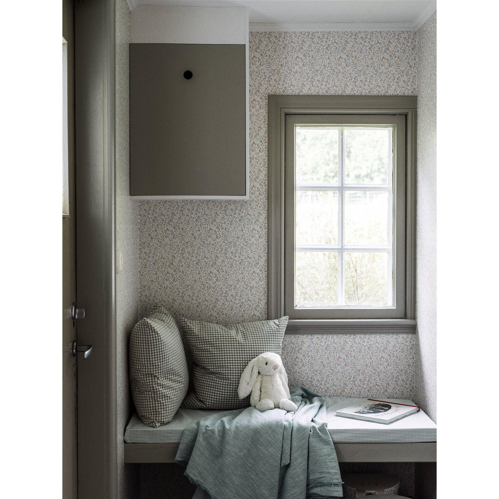 Ljusa, småblommiga Jasmine är en romantisk tapet i klassisk Newbie-stil. Det täta mönstret av blommor och blad ger ett levande och ombonat intryck på väggen och passar särskilt bra i mindre rum. Mönstret är skapat av Newbies designstudio och trycks hos Boråstapeter i tre ljusa färgställningar. Här ser du den krämvita med ljusrosa och blekgula blommor och ljust grågröna blad.