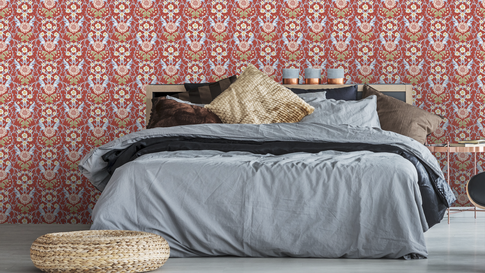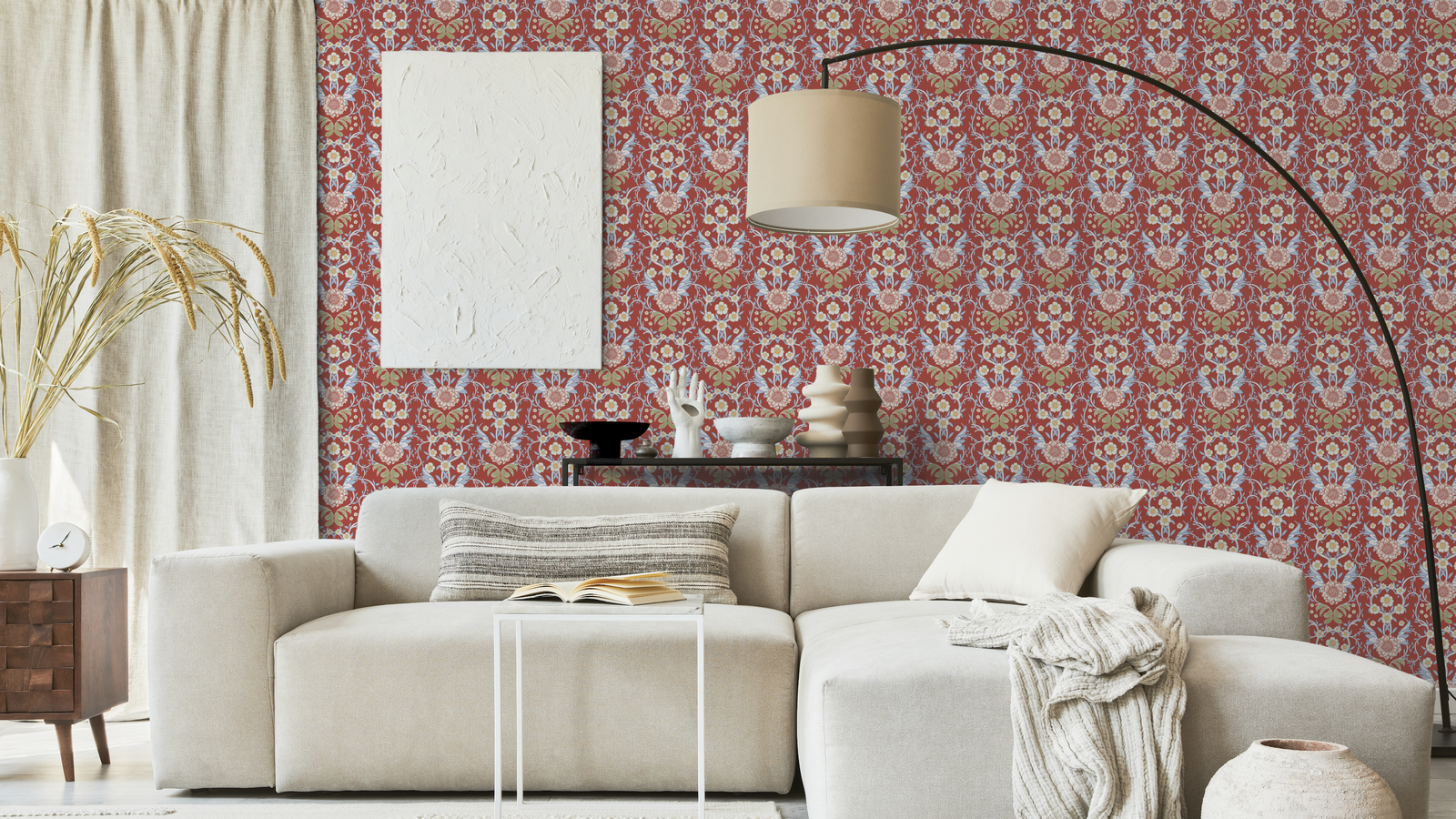 Serendipity- är en vacker medalljontapet med ett blommigt mönster i neutrala färger. Mönstret består av medaljonger omgivna av små blommor och blad. Medaljongerna är i en blek grå eller beige färg och blommorna samt bladen är i en mjuk, krämig vit ton eller med en kraaftfull kuliss i t.ex. blått eller rött. Valet är ditt..