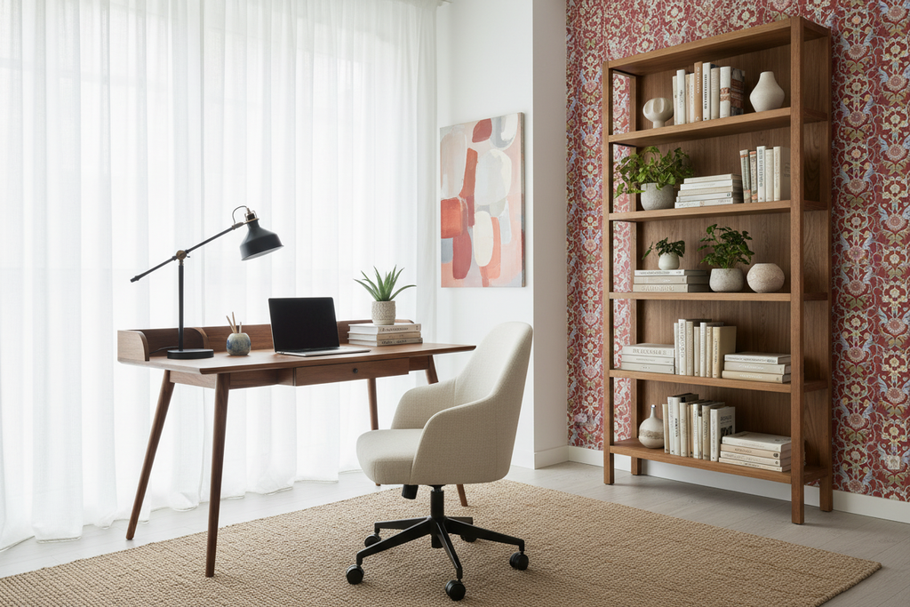 Mönstret ger intrycket av en klassisk och tidlös design, med enkelhet och elegans. Tapeten skulle vara en perfekt dekoration för vardagsrum, matsal eller hall där du vill skapa en sofistikerad och stilfull atmosfär. Den neutrala färgskalan gör också tapeten lätt att matcha med andra interiördetaljer.