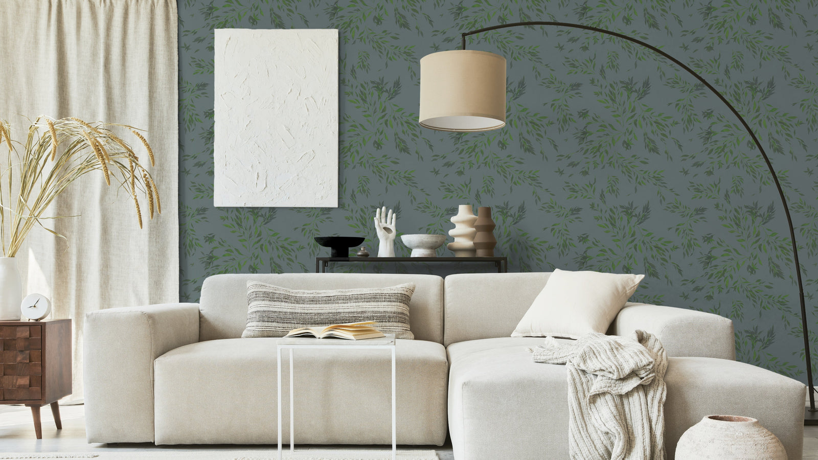 Spirea är en tapet som för tankarna till en mjuk och vacker trädgård. Dess böljande kvistar med gröna blad ger en känsla av lugn och harmoni. Bakgrunden på tapeten är skapad med en palett av mjuka färger som gör att Spireas motiv står ut på ett subtilt och elegant sätt.