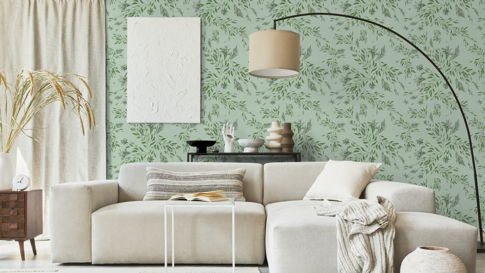 Spirea är en tapet som för tankarna till en mjuk och vacker trädgård. Dess böljande kvistar med gröna blad ger en känsla av lugn och harmoni. Bakgrunden på tapeten är skapad med en palett av mjuka färger som gör att Spireas motiv står ut på ett subtilt och elegant sätt.