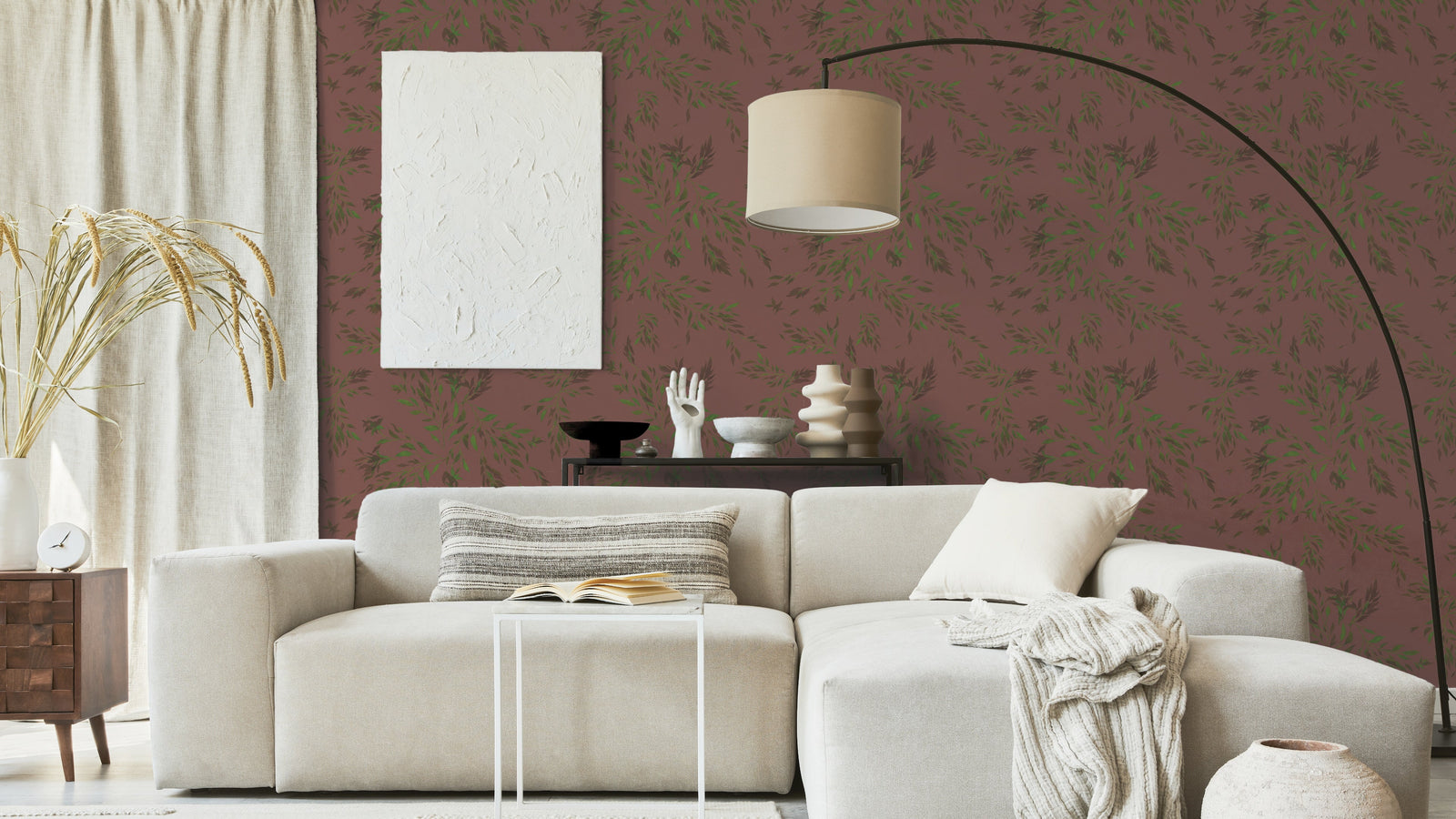 Spirea är en tapet som för tankarna till en mjuk och vacker trädgård. Dess böljande kvistar med gröna blad ger en känsla av lugn och harmoni. Bakgrunden på tapeten är skapad med en palett av mjuka färger som gör att Spireas motiv står ut på ett subtilt och elegant sätt.