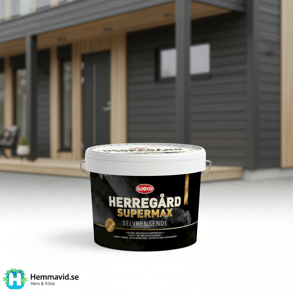 Herregård Supermax är en av testvinnarna i Folksams färgtest 2018. Det är testat 47 av de mest använda färgerna i Norden, och Herregård Supermax är testvinnare på funktion. Den är bland de bästa på svartmögel/påväxt, krackelering och avflagning.