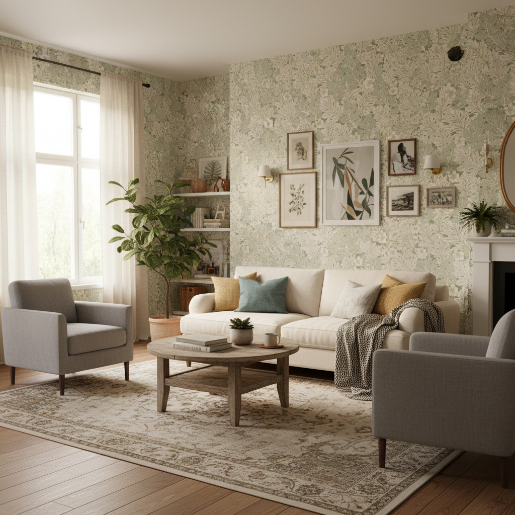 Dessutom är tapeten lättplacerad och anpassningsbar till olika rum och stilar. Du kan välja att använda den som en accentvägg i vardagsrummet för att skapa en romantisk och avslappnad atmosfär.
